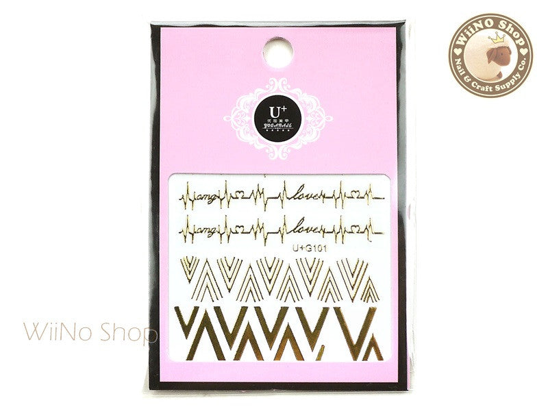 Gold V Heartbeat Pattern Adhesive Nail Art Sticker - 1 pc (U+G101)