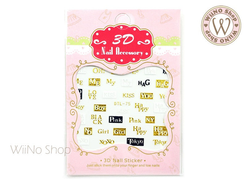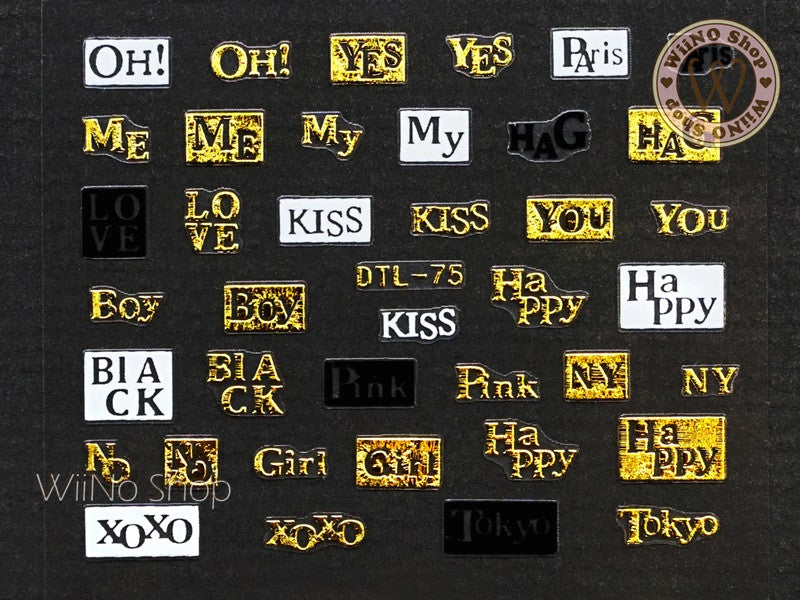 Gold Happy Kiss Hug Nail Art Sticker - 1 pc (DTL-75G)