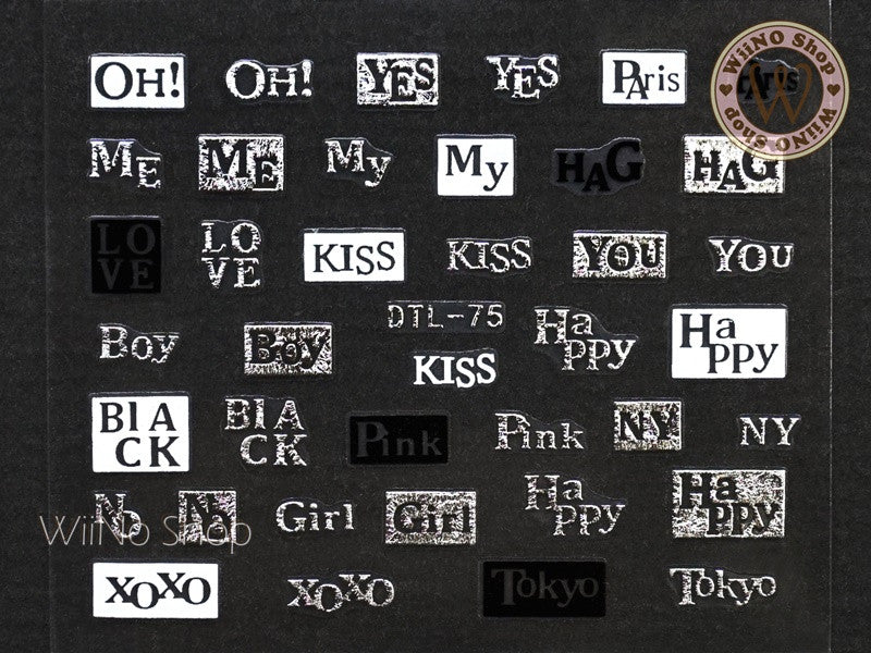 Silver Happy Kiss Hug Nail Art Sticker - 1 pc (DTL-75S)
