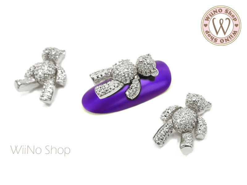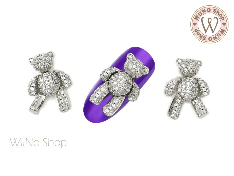 Silver Movable Bear Crystal Nail Jewelry Charm - 1 pc