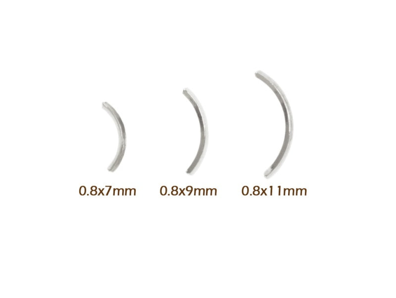 Silver Square Curved Tube Metal Studs - 50 pcs (0.8x7/9/11mm)