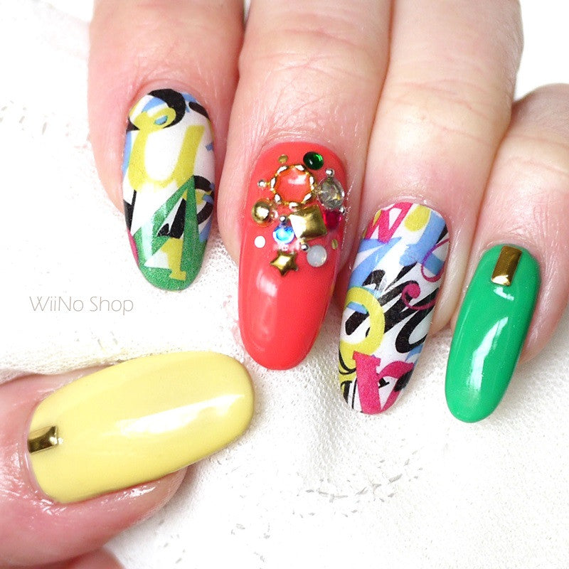 Graffiti Text Photo Stamp Water Slide Nail Art Decals - 1pc (BLE-1895)