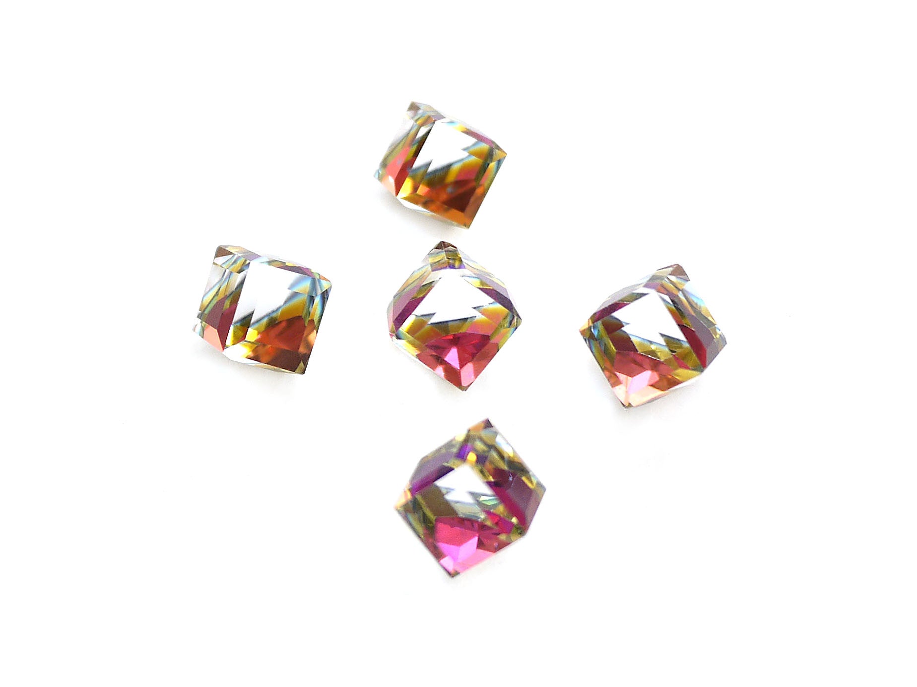 10mm Purple Rainbow 3D Square Cube Crystal Rhinestone - 2 pcs
