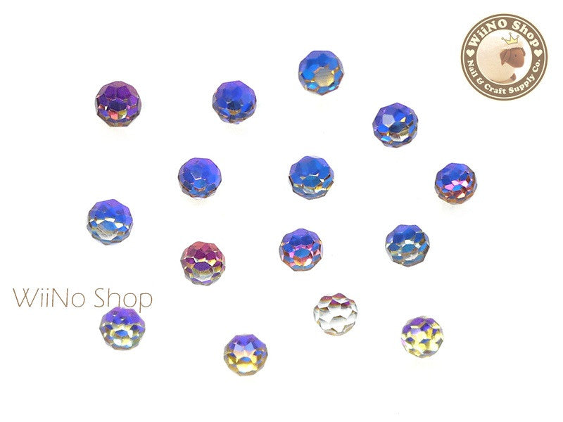 4mm Blue Rainbow 3D Globe Crystal Rhinestone - 5 pcs