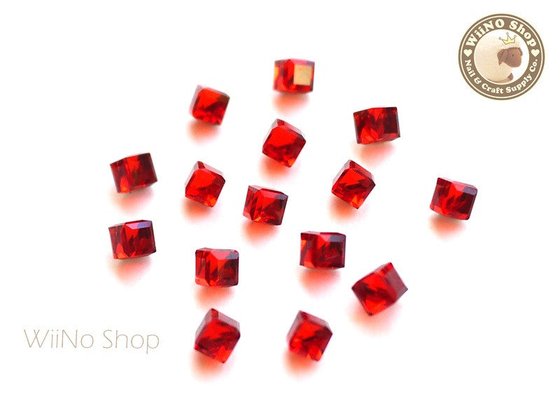 4mm Red 3D Square Cube Crystal Rhinestone - 5 pcs