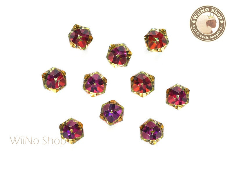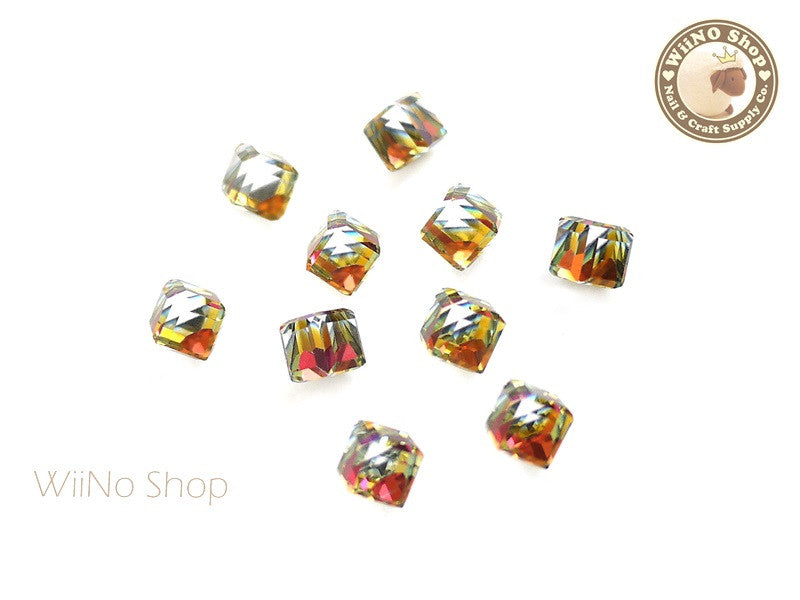 6mm Purple Rainobow 3D Square Cube Crystal Rhinestone - 5 pcs