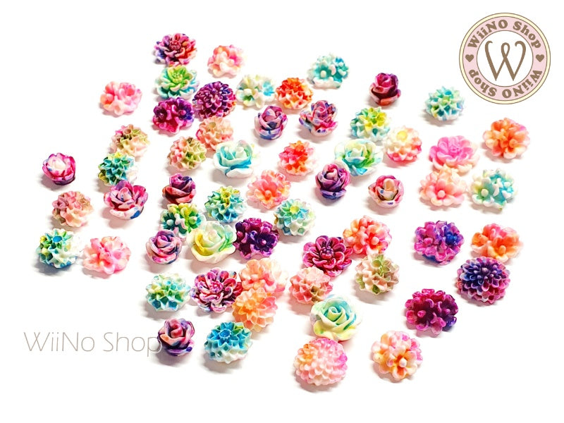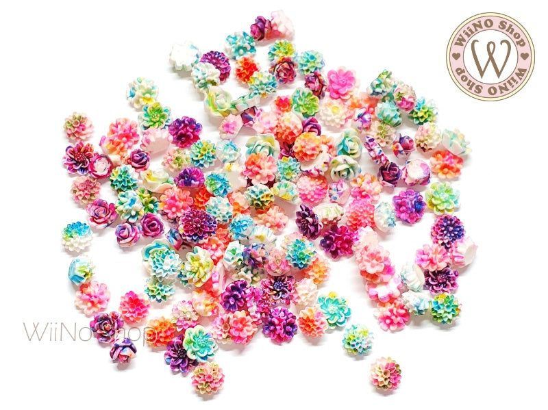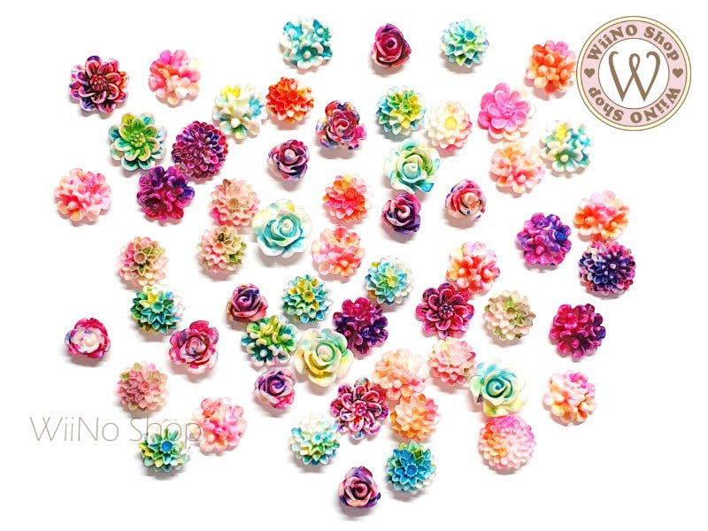 Colorful Flower Mix Nail Art Cabochons - 10 pcs