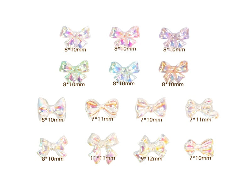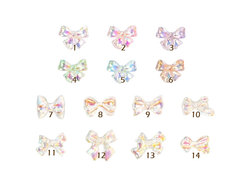 Iridescent Ribbon Bow Nail Art Cabochons - 5 pcs