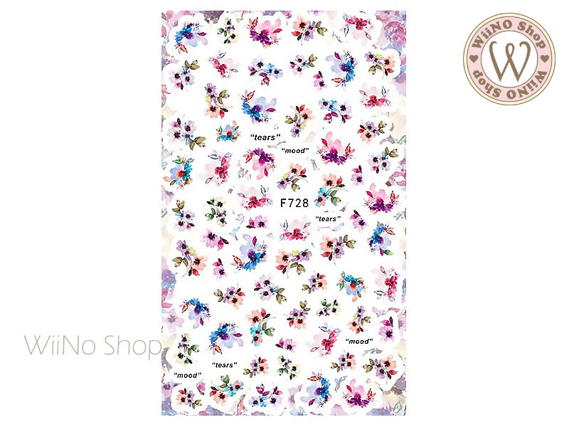 Watercolor Flower Adhesive Nail Art Sticker - 1 pc (MT005)