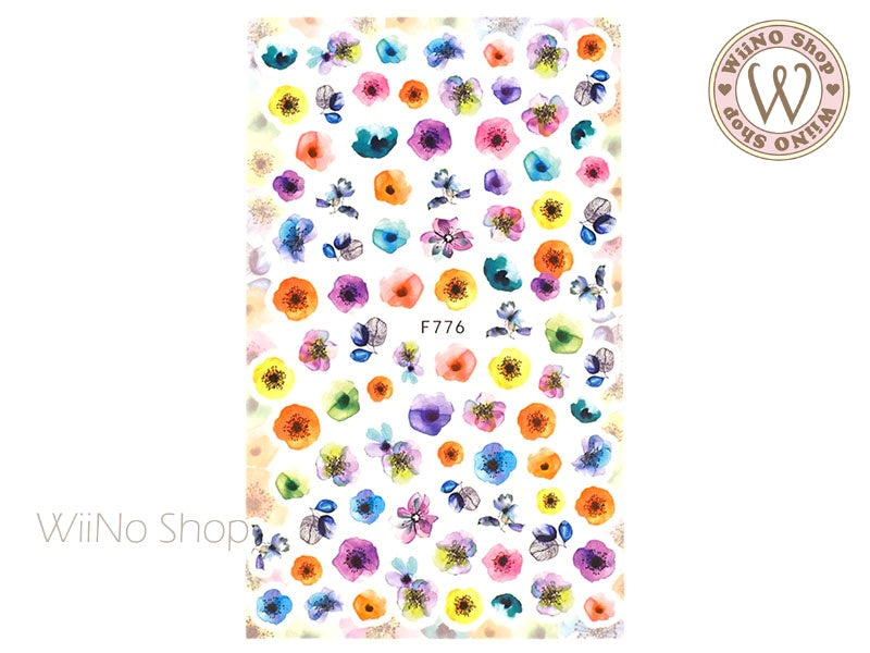Watercolor Flower Adhesive Nail Art Sticker - 1 pc (F728)
