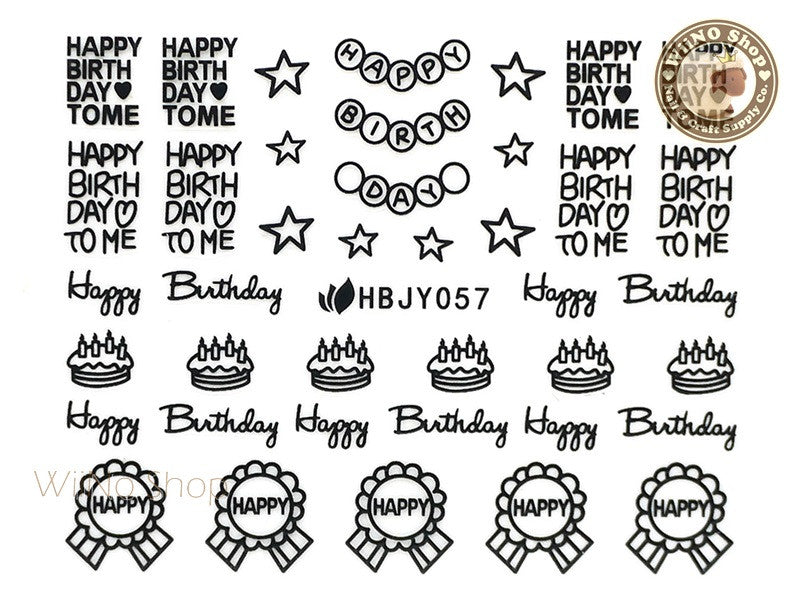 HBJY057 Black Happy Birthday Nail Sticker Nail Art - 1 pc