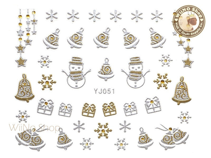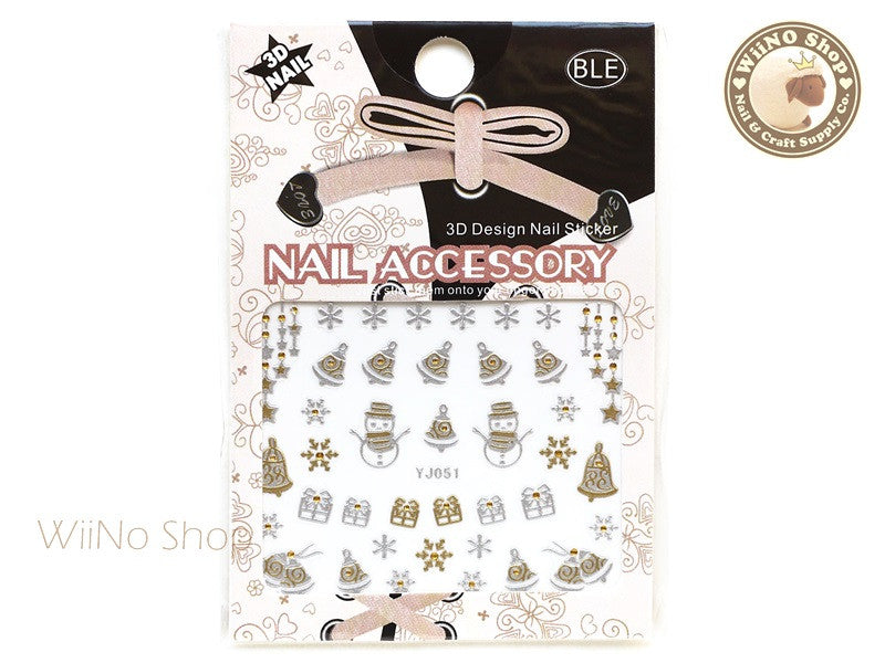Silver Gold Christmas Jingle Bell Nail Art Sticker - 1 pc (YJ051)
