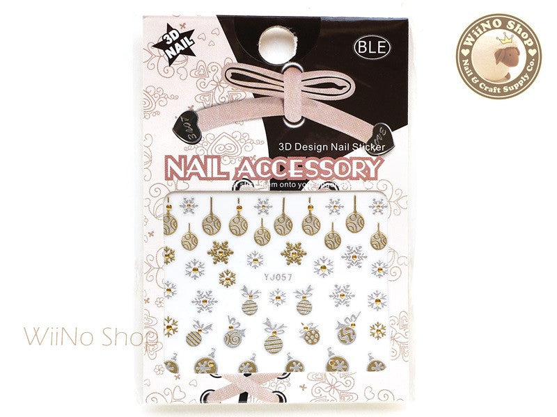 Silver Gold Christmas Ornament Snowflake Nail Art Sticker - 1 pc (YJ057)