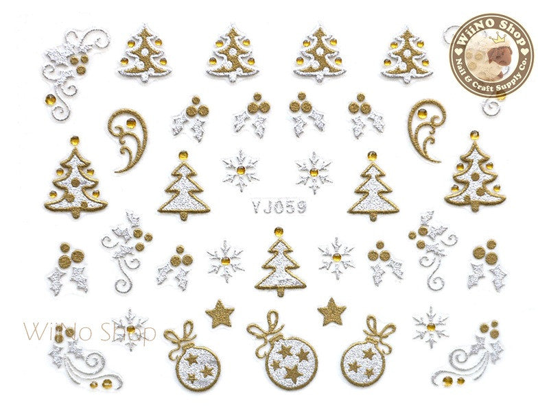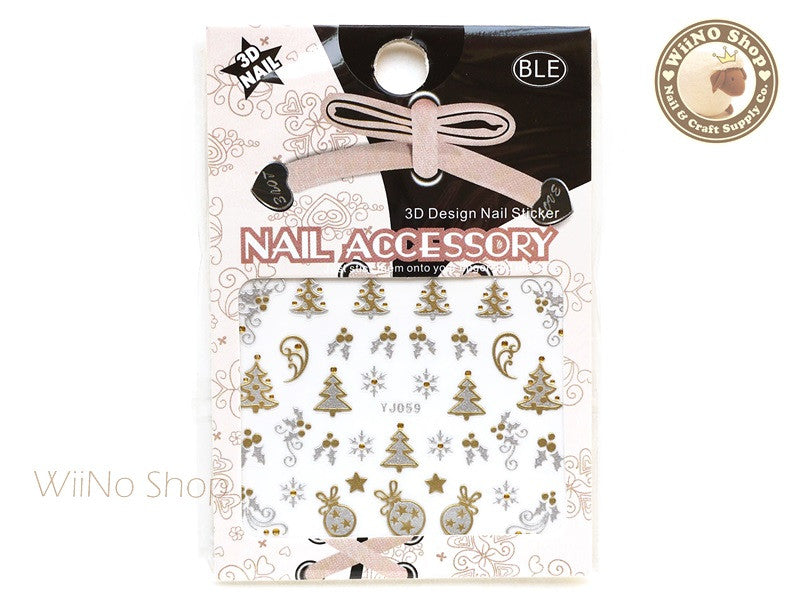 Silver Gold Christmas Tree Mistletoe Ornament Nail Art Sticker - 1 pc (YJ059)