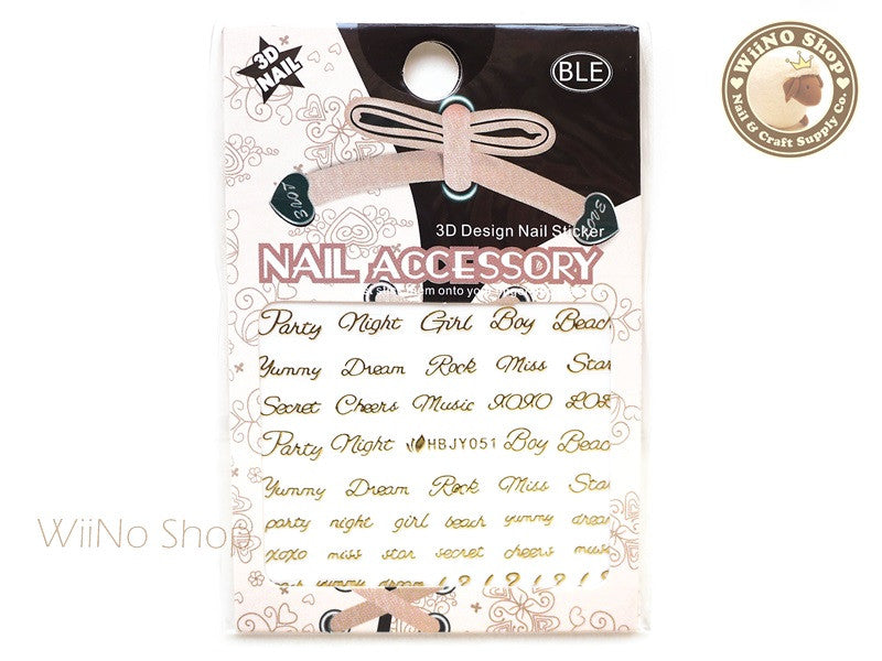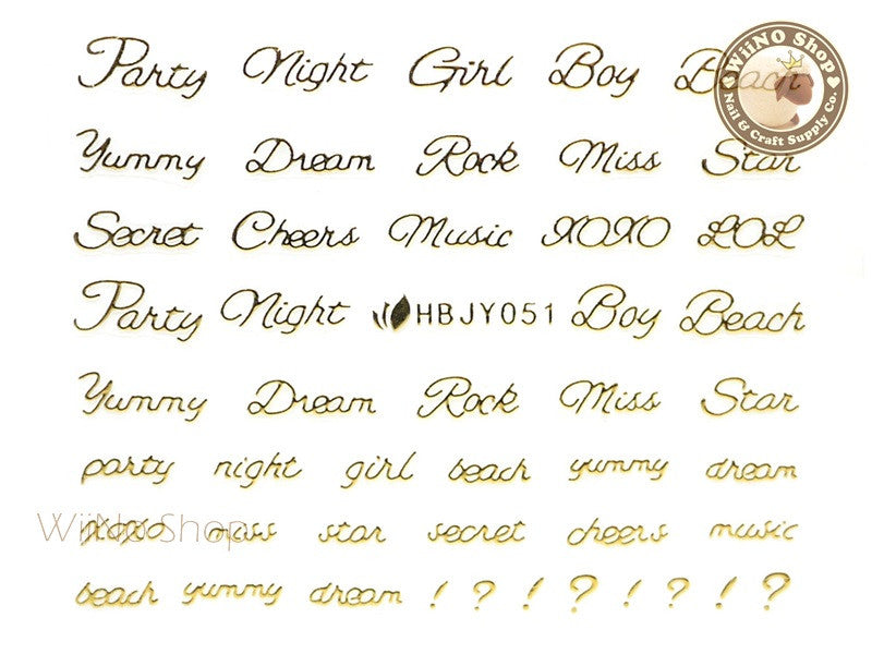 Gold Text Tag Adhesive Nail Art Sticker - 1 pc (HY-033)