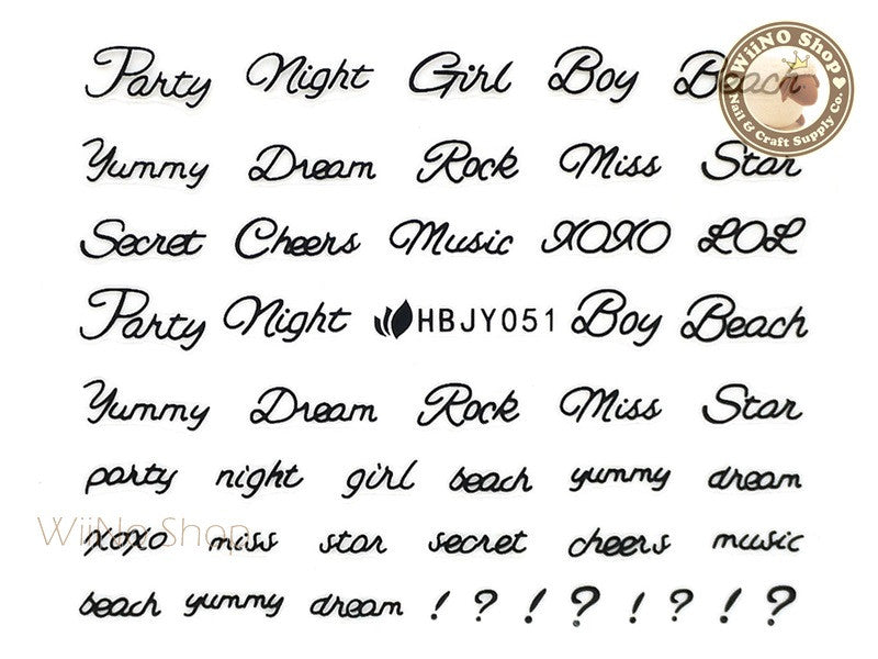 HBJY049 Black Letter Nail Sticker Nail Art - 1 pc