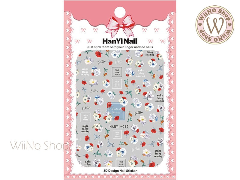 Watercolor Floral Adhesive Nail Art Sticker - 1 pc (HY-019)