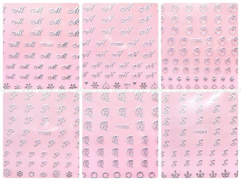 Silver Alphabet Initial Adhesive Nail Sticker Nail Art - 1 pc (TY037S-TY60S)
