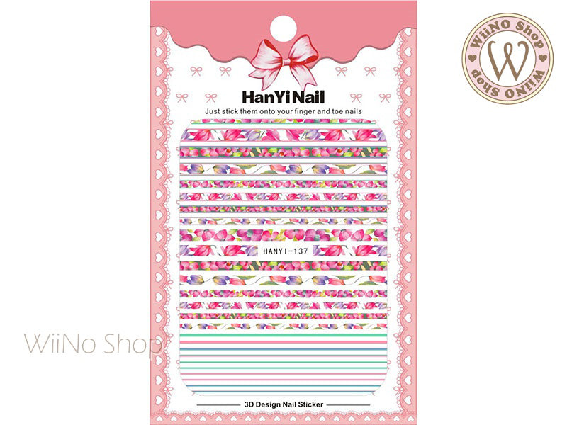 Fuchsia Floral Line Adhesive Nail Art Sticker - 1 pc (HY-137)