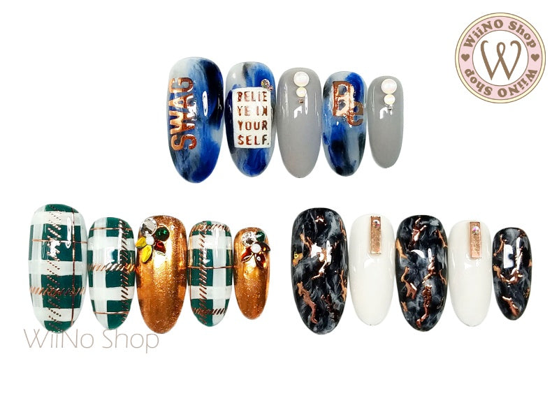Rose Gold Letter & Line Adhesive Nail Art Sticker - 1 pc (JO-371)