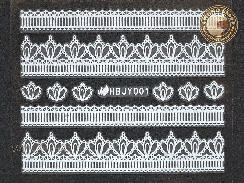 HBJY001 White Lace Nail Sticker Nail Art - 1 pc