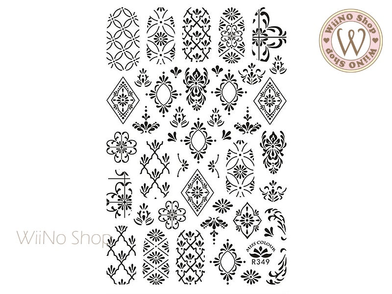 Black Moroccan Pattern Adhesive Nail Art Sticker - 1 pc (R349-B)