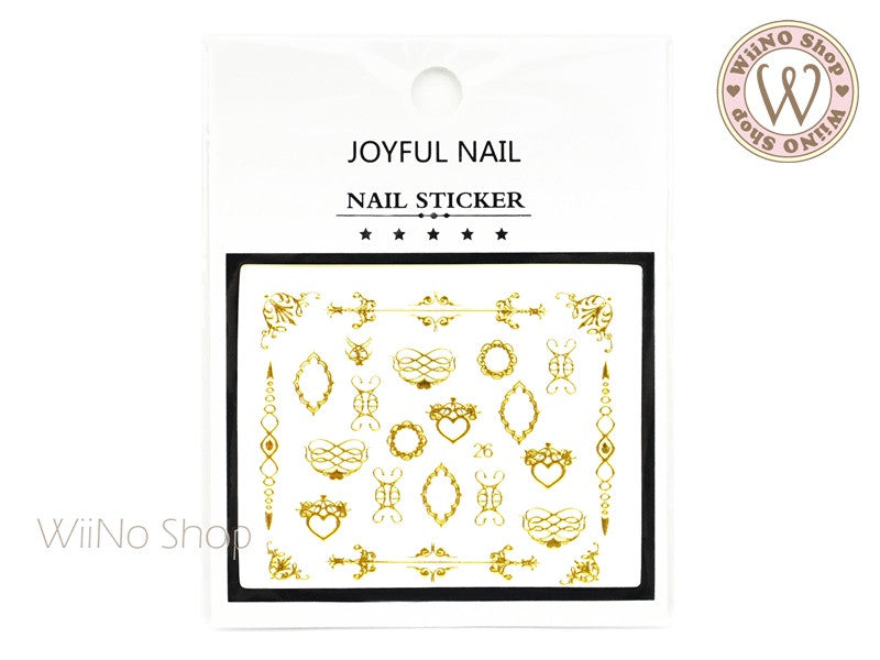 Gold Victorian Lace Pattern Adhesive Nail Art Sticker - 1 pc (J26)