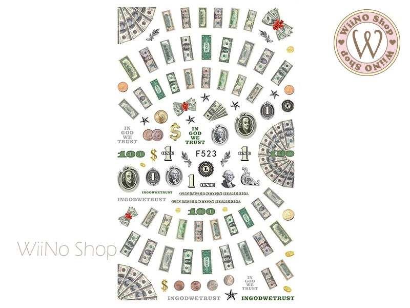 Money Adhesive Nail Art Sticker - 1 pc (F523)
