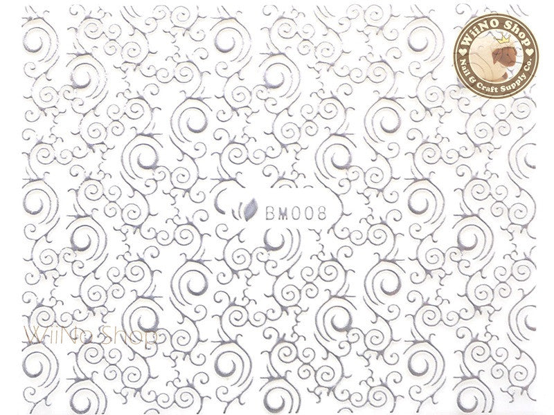 Silver Swirl Pattern Adhesive Nail Sticker Nail Art - 1 pc (BM008S)