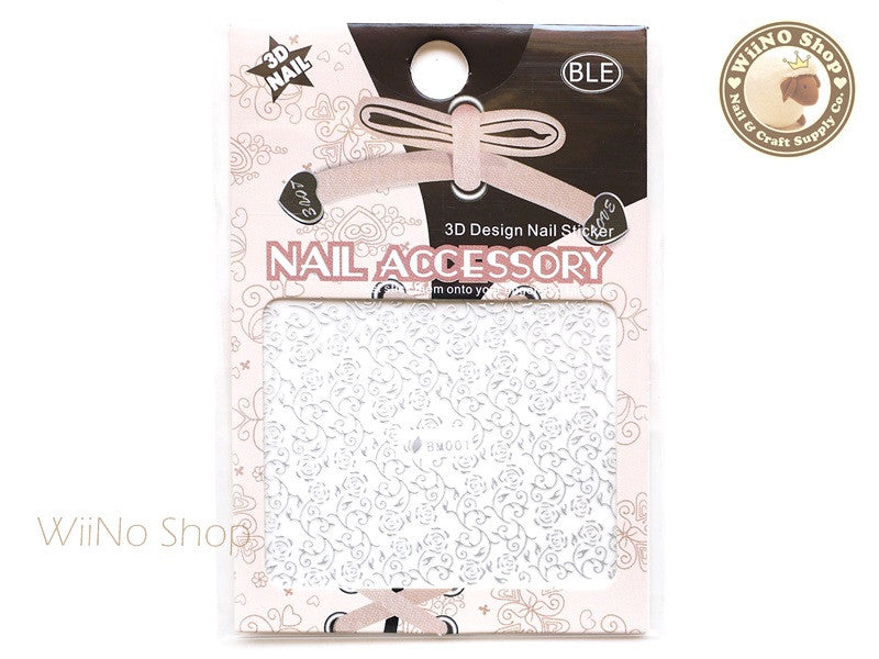 Silver Rose Pattern Adhesive Nail Sticker Nail Art - 1 pc (BM001S)