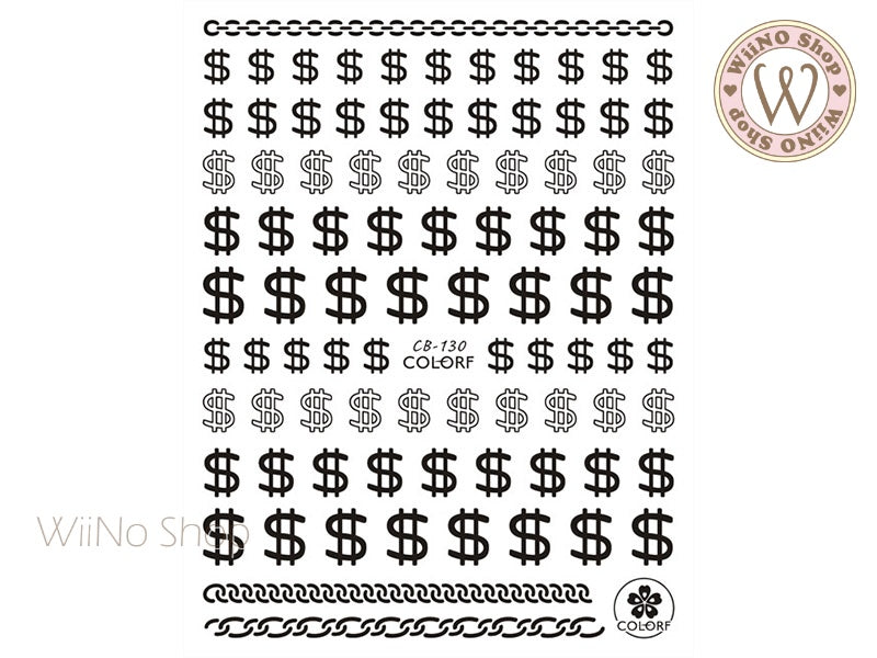 Black Dollar Sign Adhesive Nail Art Sticker - 1 pc (CB-130B)