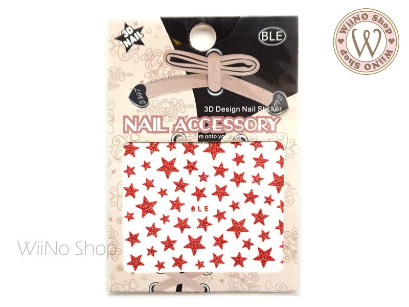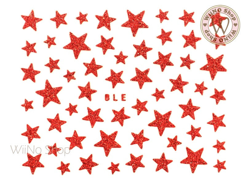 Glitter Star Red Adhesive Nail Sticker Nail Art - 1 pc (BLE-R)