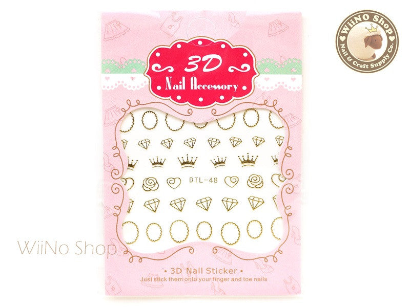 Gold Crown Diamond Frame Nail Art Sticker - 1 pc (DTL-48G)