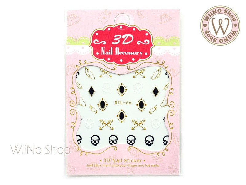 Gold Skull Wing Nail Art Sticker - 1 pc (DTL-66G)