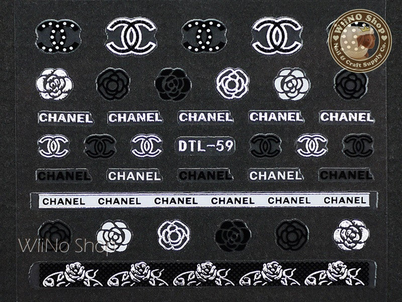 Silver Black CoCo Camellia Nail Art Sticker - 1 pc (DTL-59S)