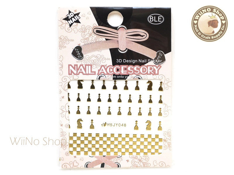 HBJY048 Gold Chess Nail Sticker Nail Art - 1 pc