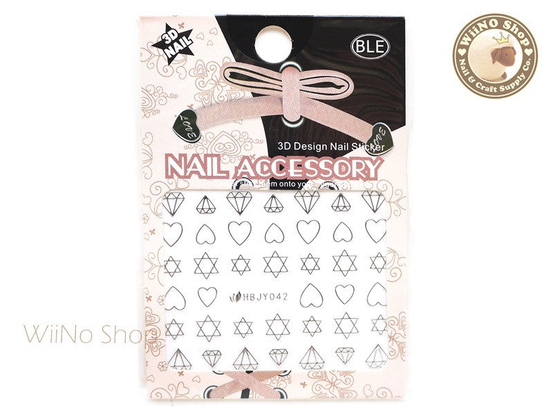 HBJY042 Black Diamond Heart Star Nail Sticker Nail Art - 1 pc