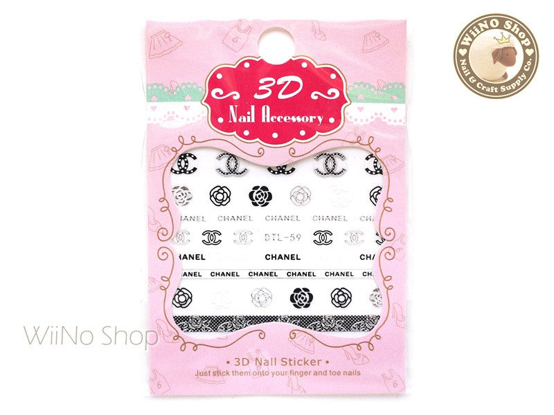 Silver Black CoCo Camellia Nail Art Sticker - 1 pc (DTL-59S)