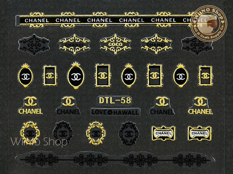 Gold Black CoCo Frame Nail Art Sticker - 1 pc (DTL-58G)