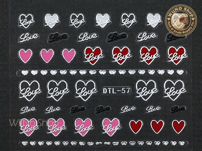 Silver Pink Red Love Heart Nail Art Sticker - 1 pc (DTL-57S)