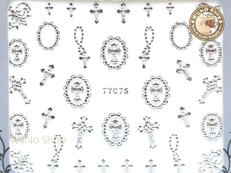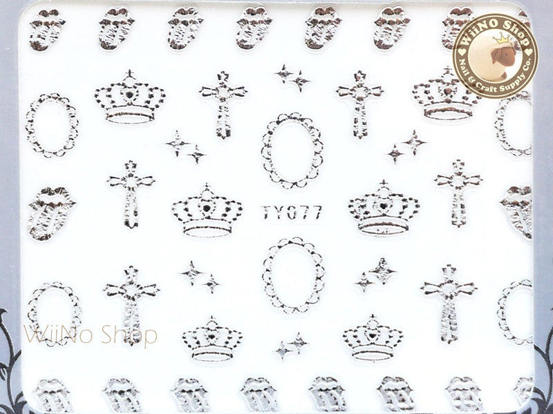 Silver Crown Cross Adhesive Nail Sticker Nail Art - 1 pc (TY077S)