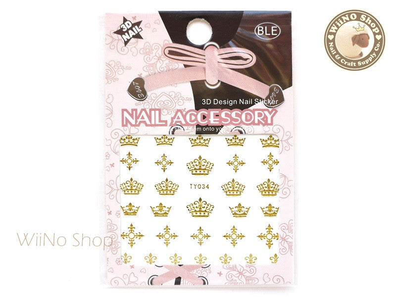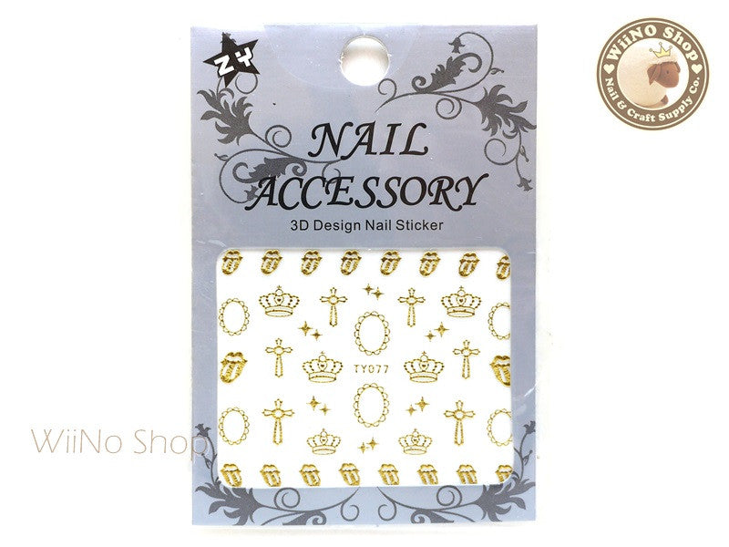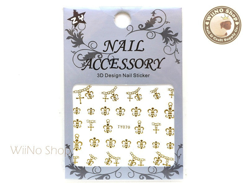 Gold Crown Cross Fleur De Lis Adhesive Nail Sticker Nail Art - 1 pc (TY034G)