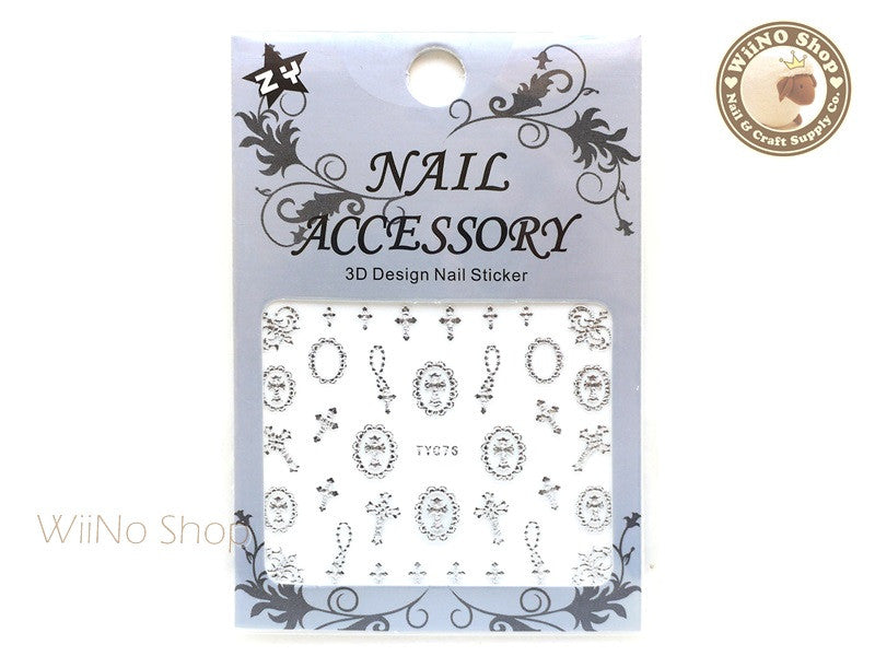 Silver Cross Frame Adhesive Nail Sticker - 1 pc (TY076S)