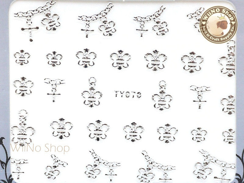 Silver Fleur De Lis Chain Adhesive Nail Sticker - 1 pc (TY070S)