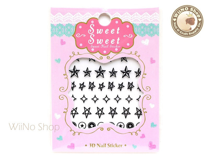 Glitter Star Black Adhesive Nail Sticker Nail Art - 1 pc (BLE-BK)