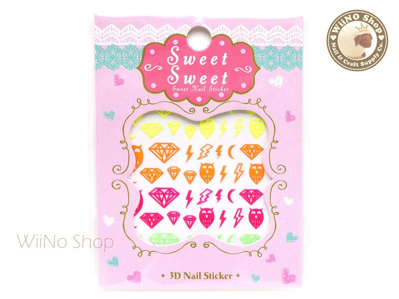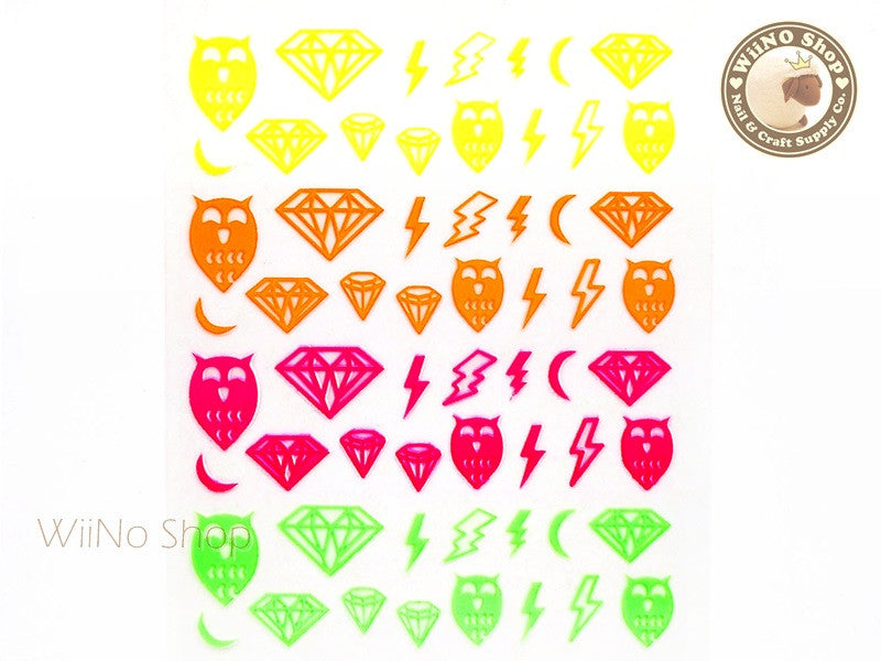 Neon Owl Diamond Adhesive Nail Sticker Nail Art - 1 pc (HR02)