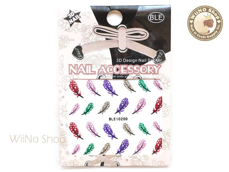 Glitter Feather Adhesive Nail Sticker Nail Art - 1 pc (BLE1020D)