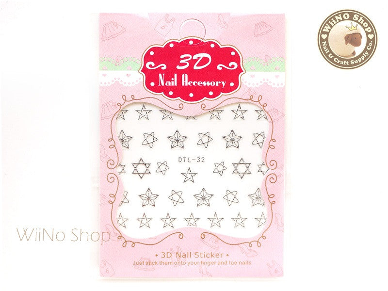 Silver Drawing Star Nail Art Sticker - 1 pc (DTL-32S)