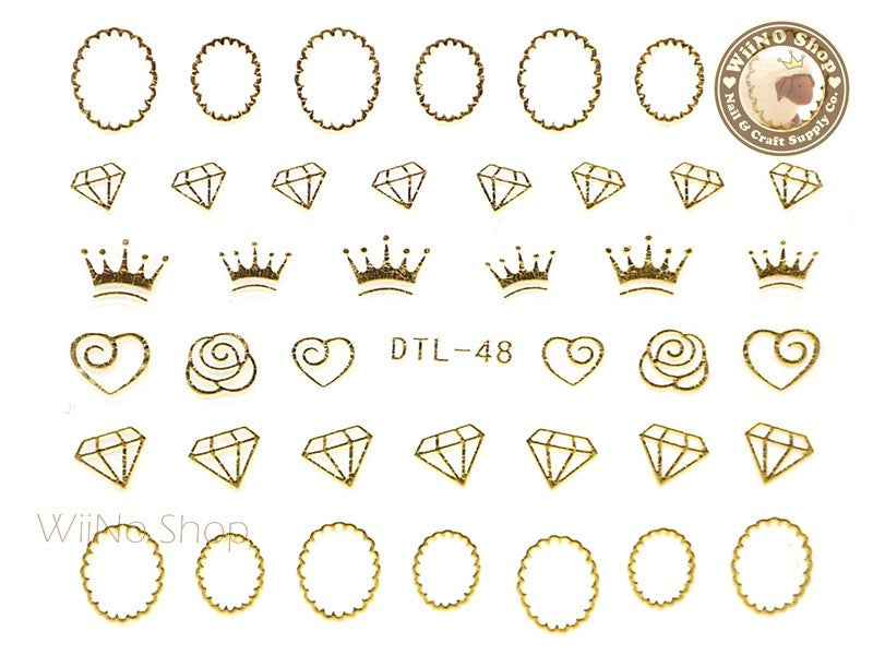 Gold Crown Diamond Frame Nail Art Sticker - 1 pc (DTL-48G)