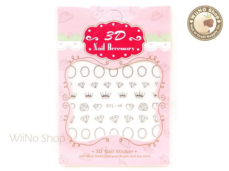 Silver Crown Diamond Frame Nail Art Sticker - 1 pc (DTL-48S)